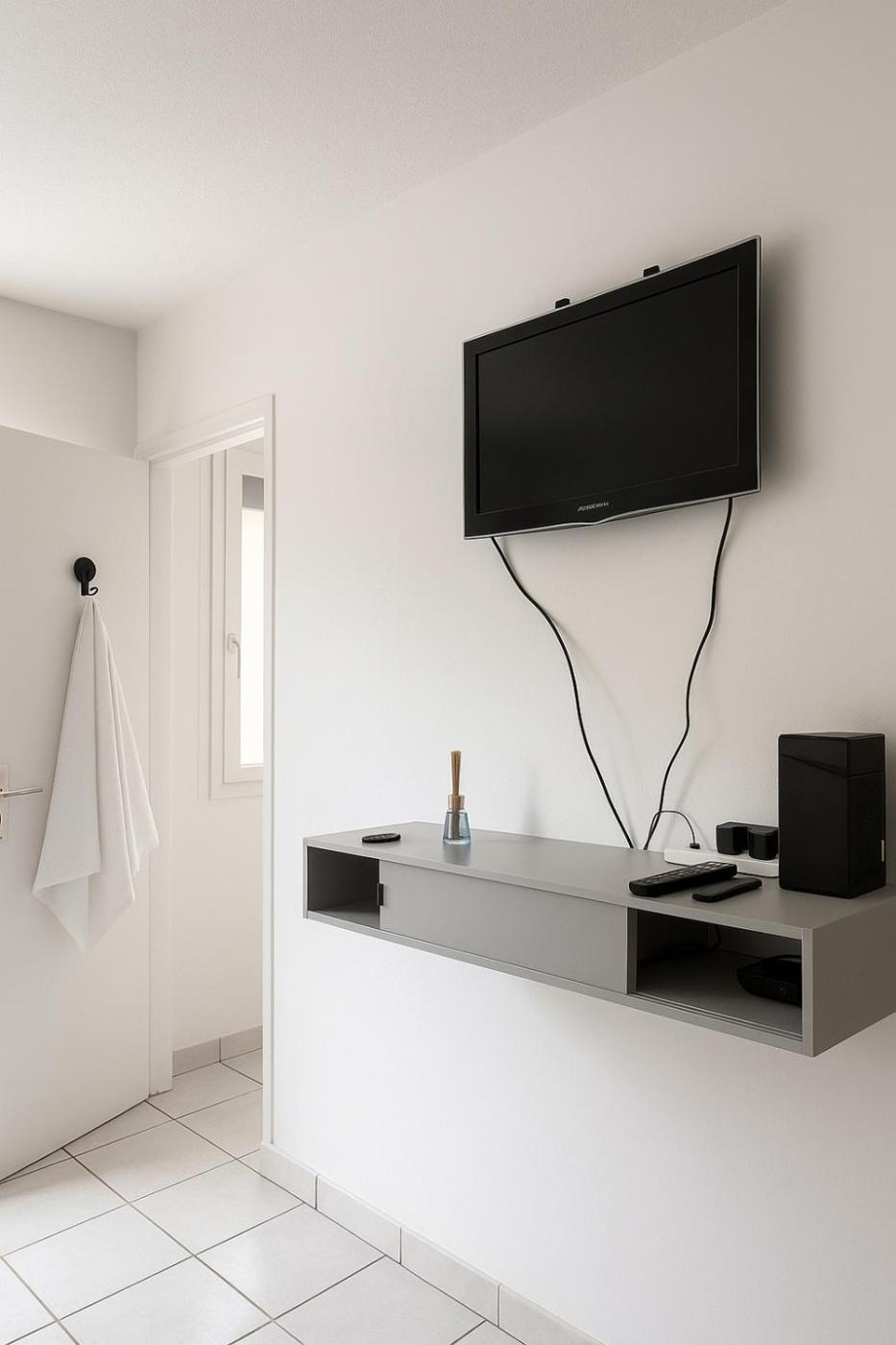 Cet appartement comporte 1 chambre, une télévision à écran plat, ainsi qu’une cuisine.