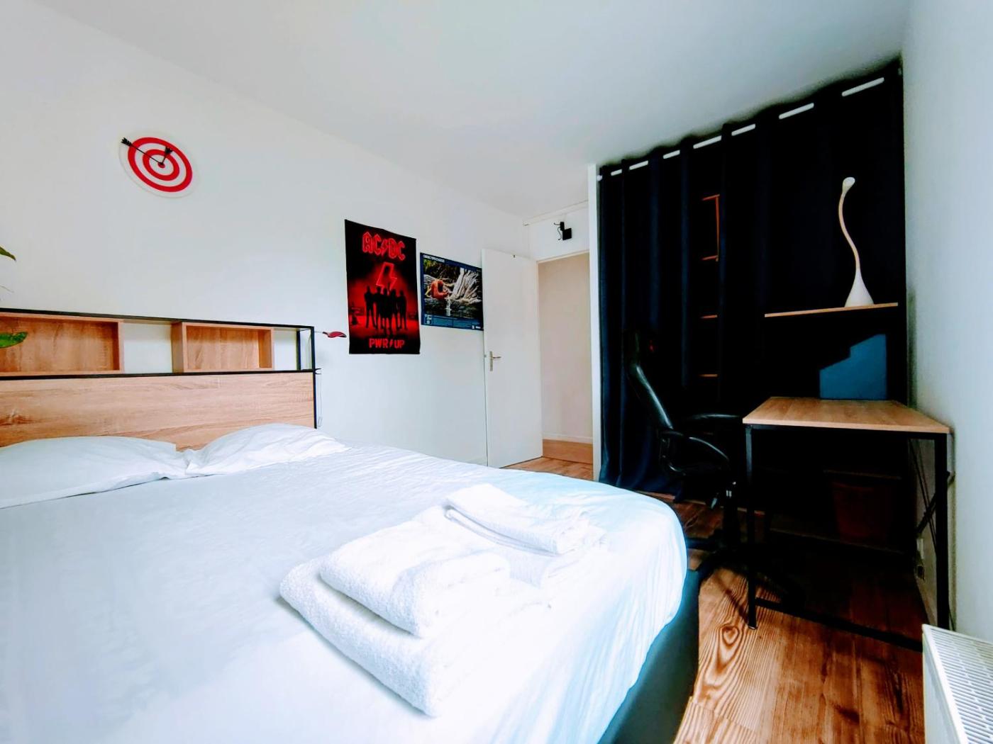 Appartement 3 Chambres. This spacious apartment features 1 living room, 3 separate bedrooms and 1 bathroom with a shower and a hairdryer. Meals can be prepared in the kitchen, which has a refrigerator, a dishwasher, kitchenware and an oven. This apartment has a washing machine, an electric kettle and a TV. The unit has 4 beds.