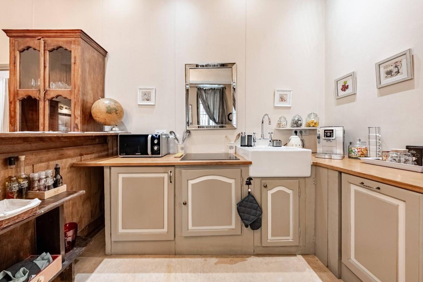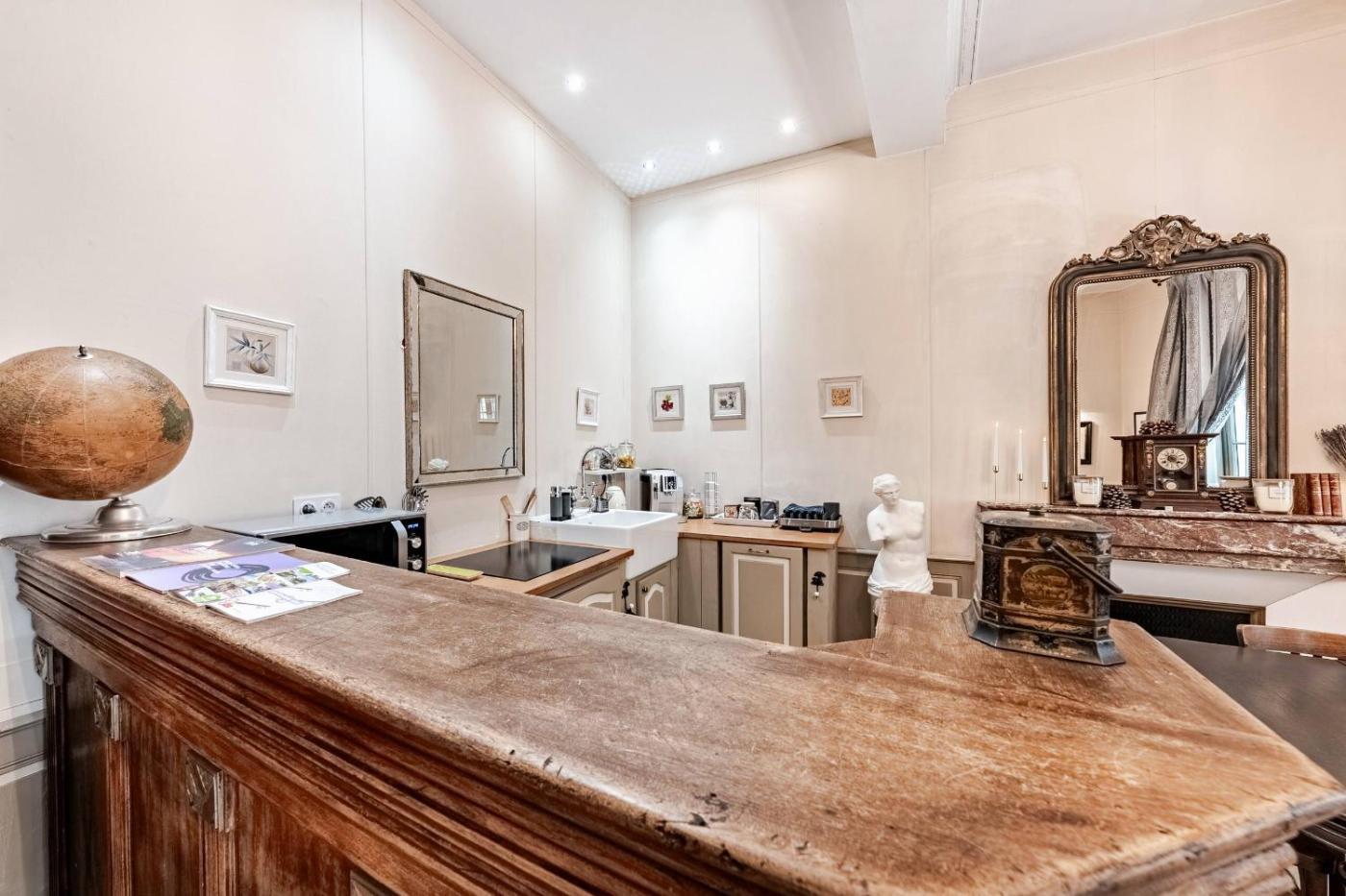 Appartement. Cet appartement dispose dune cheminée. Cet appartement comprend un salon, une chambre séparée ainsi qu’une salle de bains avec une baignoire et des articles de toilette gratuits. La cuisine bien équipée est munie de plaques de cuisson, d’un réfrigérateur, d’un lave-vaisselle et d’ustensiles. Donnant sur une rue calme, cet appartement est climatisé et insonorisé. Il dispose également d’une télévision par câble à écran plat, d’un lave-linge et d’un plateaubouilloire. Le logement comporte 2 lits.