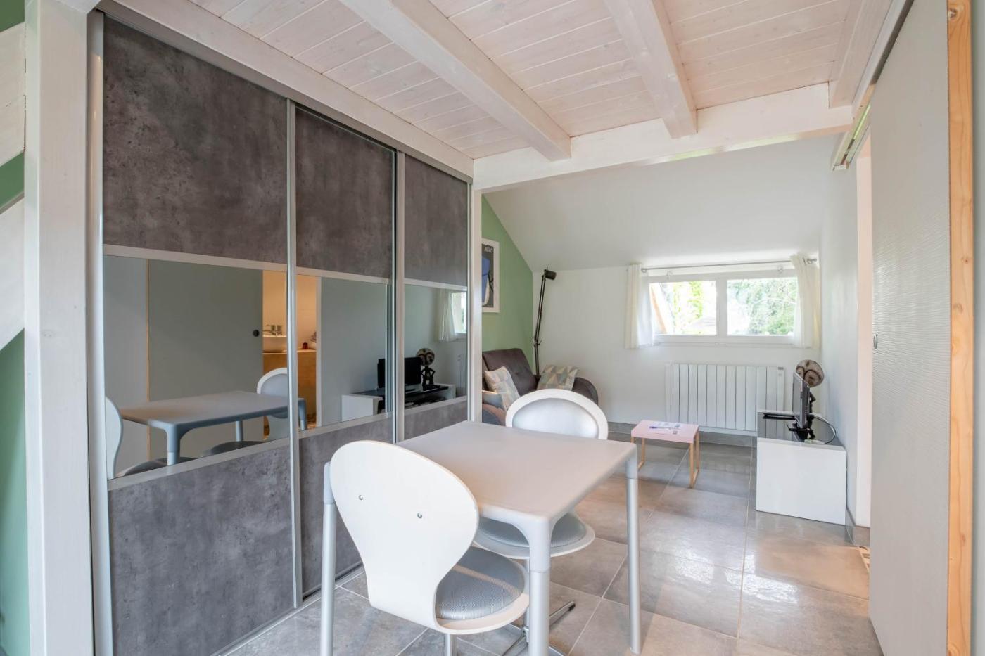 Chambre Double - Vue sur Parc. Guests will have a special experience as the holiday home provides a pool with a view. Featuring a private entrance, this air-conditioned holiday home consists of 1 living room, 1 separate bedroom and 1 bathroom with a walk-in shower and a hairdryer. Guests will find a stovetop, a refrigerator, kitchenware and an oven in the well-fitted kitchen. The holiday home also offers a barbecue. This holiday home features a washing machine, flat-screen TV, garden views, as well as winechampagne for guests. The unit offers 2 beds. ;