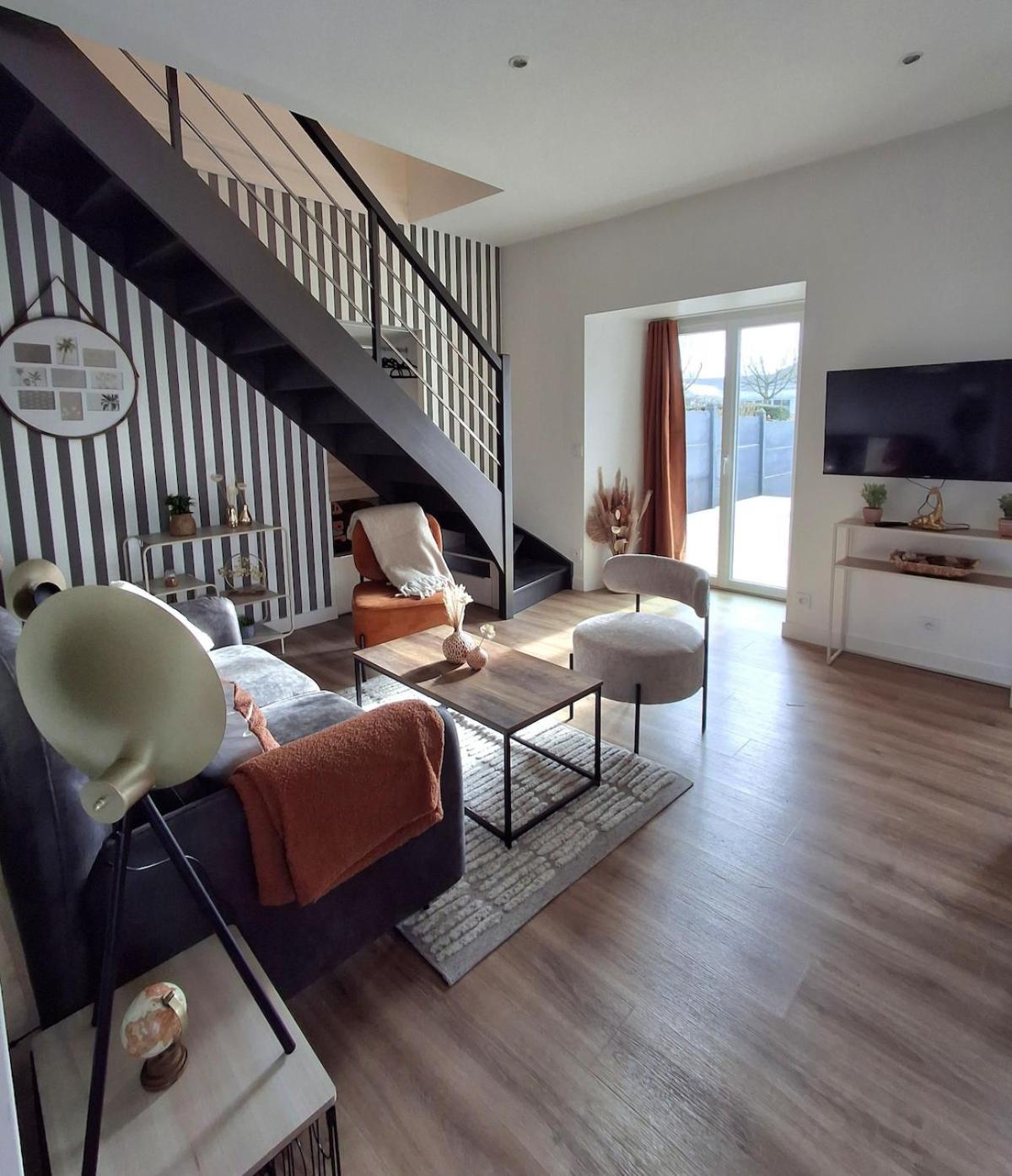 Maison de Ville 2 Chambres. Featuring a private entrance, this holiday home comprises 1 living room, 2 separate bedrooms and 1 bathroom with a shower and a hairdryer. Meals can be prepared in the well-fitted kitchen, which comes with a stovetop, a refrigerator, kitchenware and an oven. Boasting a terrace with garden views, this holiday home also provides a tea and coffee maker and a flat-screen TV with streaming services. The unit offers 3 beds.