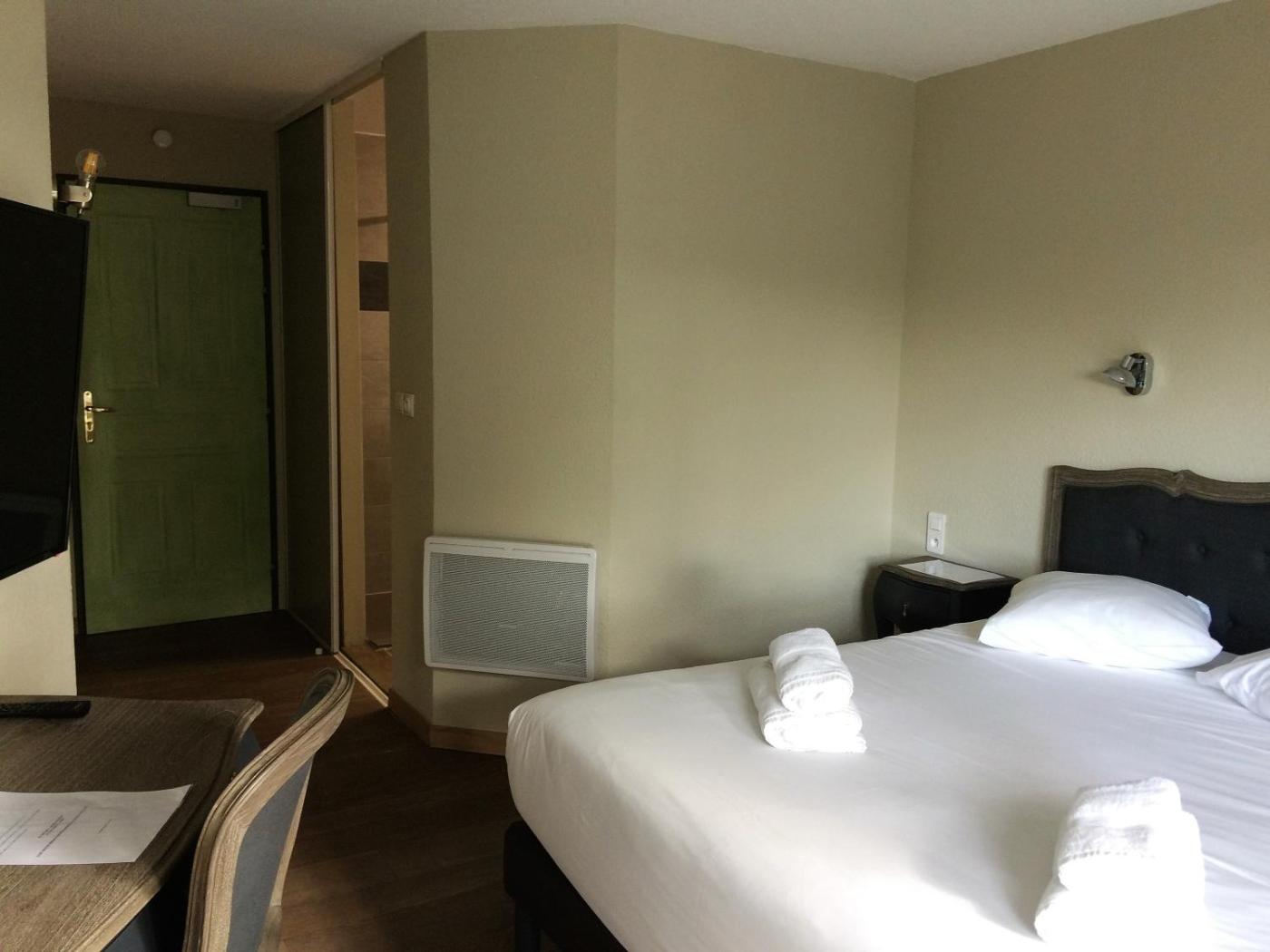 Chambre Double. Cette chambre double est insonorisée et pourvue de la climatisation ainsi que d’une bouilloire électrique. Elle sera dotée de 1 grand lit double ou de 2 lits simples, sous réserve de disponibilité. ;