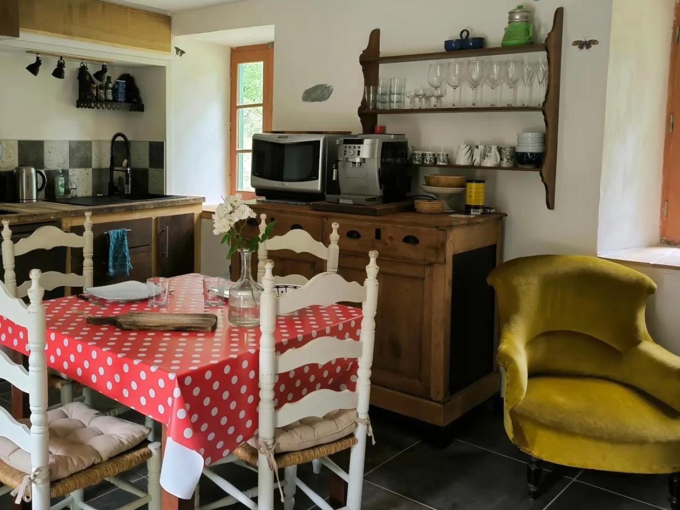 Maison 1 Chambre. This holiday homes special feature is the sauna. Featuring a private entrance, this air-conditioned holiday home comprises 1 living room, 1 separate bedroom and 1 bathroom with a bath or a shower and a hairdryer. Guests will find a stovetop, a refrigerator, a dishwasher and an oven in the kitchen. The holiday home also provides guests with a barbecue. The unit features a tea and coffee maker, garden views, a terrace and winechampagne is provided for guests. The unit offers 2 beds.