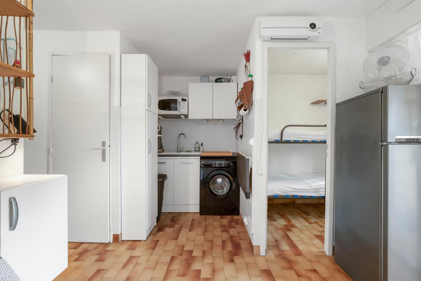 Appartement 1 Chambre. This air-conditioned apartment features 1 living room, 1 separate bedroom and 1 bathroom with a shower. Guests will find a refrigerator, kitchenware, a microwave and a toaster in the kitchen. The apartment also comes with a barbecue. This apartment has a washing machine, a tea and coffee maker, a TV and a terrace. The unit has 3 beds.