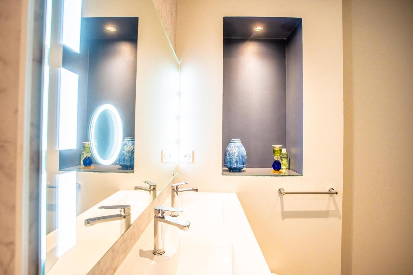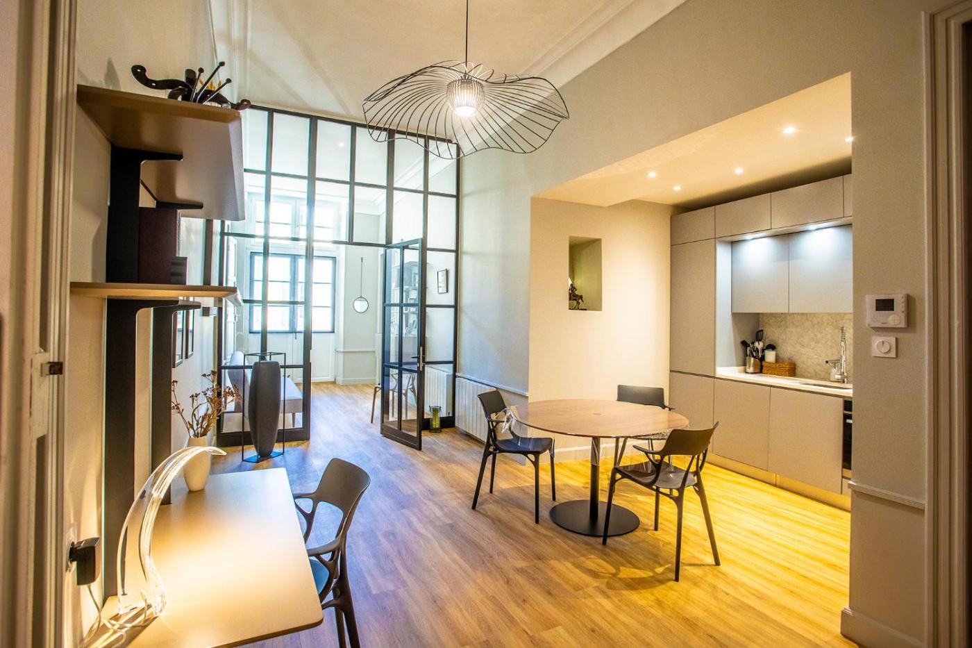 Appartement 2 Chambres. This apartment provides a fireplace. Featuring a private entrance, this spacious apartment also comprises 2 bedrooms, a seating area and 1 bathroom with a walk-in shower and a hairdryer. Meals can be prepared in the well-fitted kitchen, which comes with a stovetop, a refrigerator, a dishwasher and kitchenware. This apartment features a washing machine, soundproof walls, flat-screen TV with cable channels, as well as winechampagne for guests. The unit offers 2 beds.