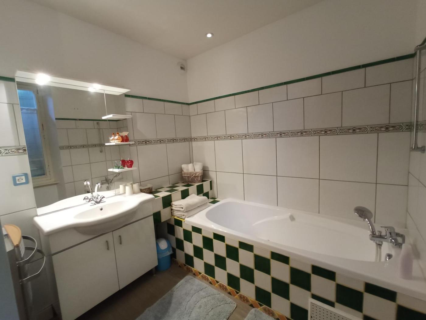 Chambre Lits Jumeaux avec Salle de Bains Privative. The twin room provides air conditioning, a tea and coffee maker, as well as a private bathroom featuring a bath and a hairdryer. The twin room offers a wardrobe and garden views. The unit offers 2 beds.
