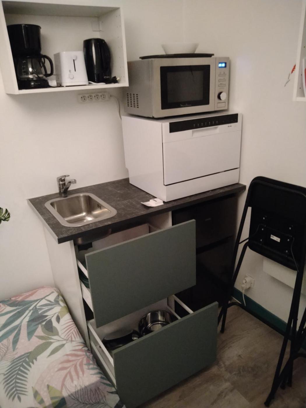 Appartement - Vue sur Jardin. Featuring a private entrance, this apartment is comprised of 1 living room, 1 separate bedroom and 1 bathroom with a shower and a hairdryer. Meals can be prepared in the kitchenette, which is fitted with a stovetop, a refrigerator, a dishwasher and kitchenware. Boasting a terrace with garden views, this apartment also offers a washing machine and a flat-screen TV with cable channels. The unit offers 1 bed.