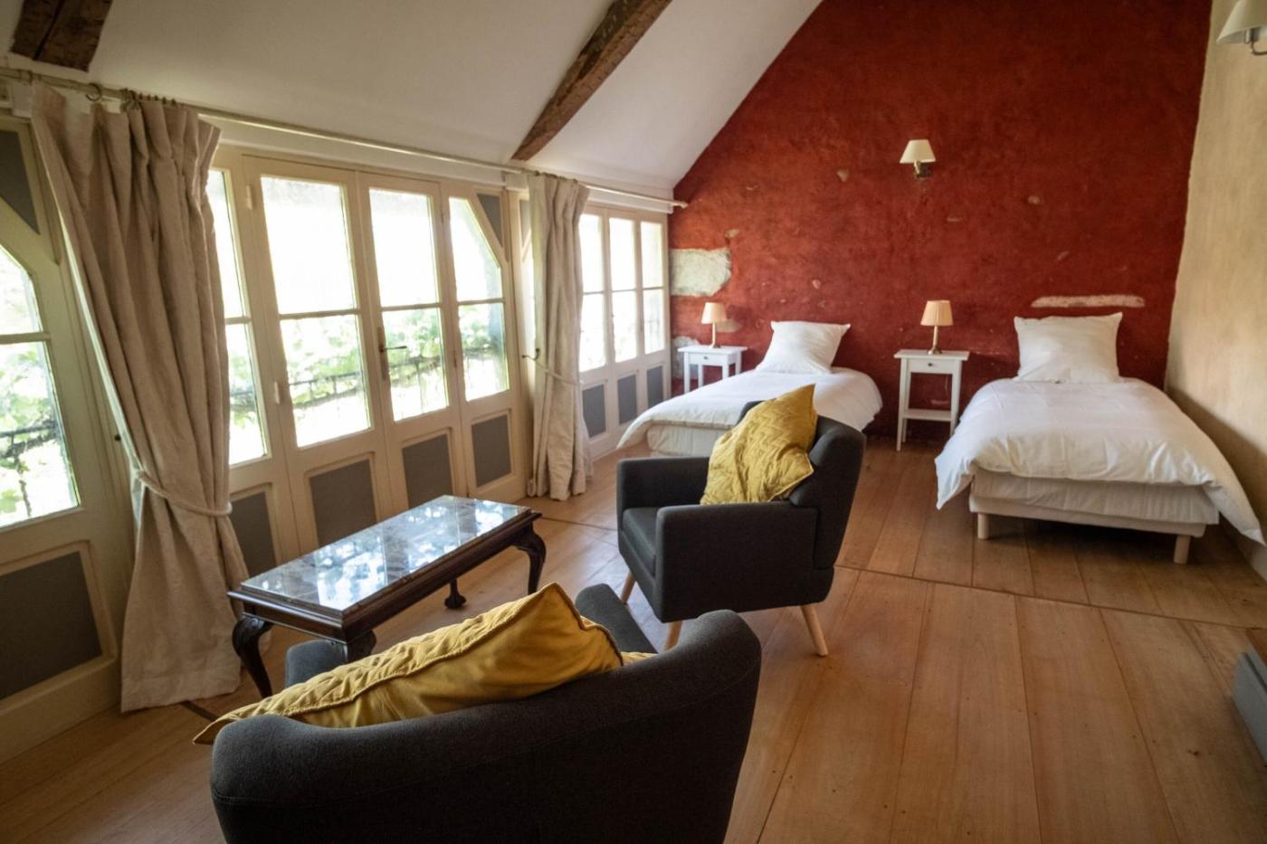 Chambre Triple Deluxe. Guests will have a special experience as the triple room offers a fireplace. The spacious triple room provides a private entrance, a tea and coffee maker, as well as a private bathroom featuring a shower and a hairdryer. The triple room features a wardrobe and garden views. ;
