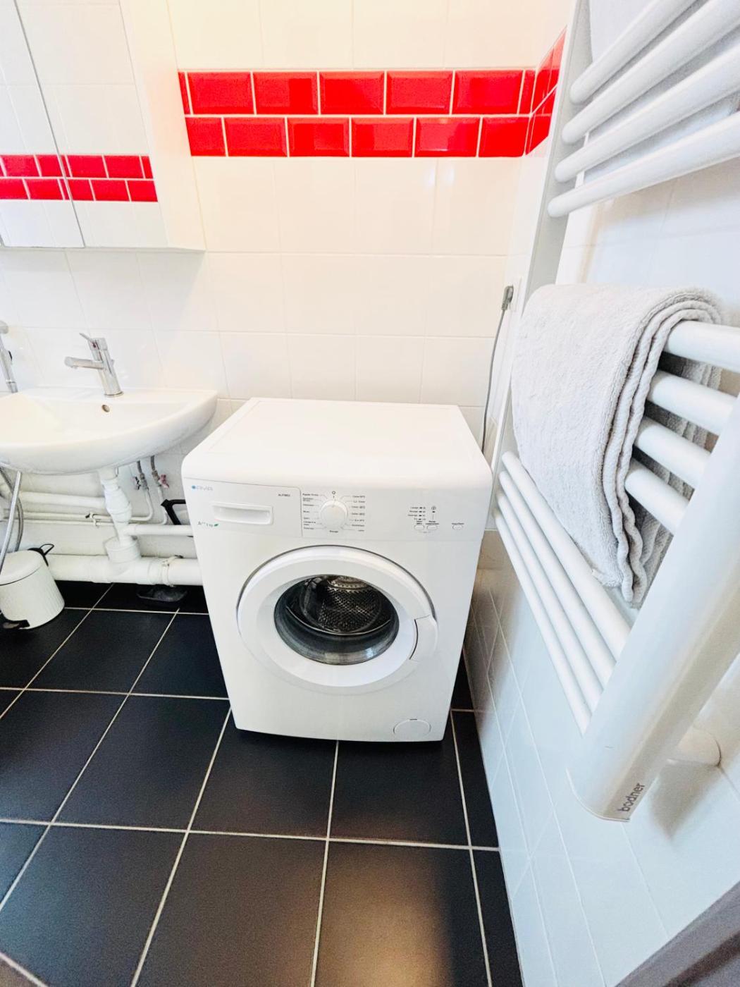 Appartement 2 Chambres. The fully equipped kitchen features a stovetop, a refrigerator, a dishwasher and an oven. The apartment has parquet floors, a seating area with a flat-screen TV, a washing machine, a coffee machine, as well as a dining area. The unit offers 2 beds.