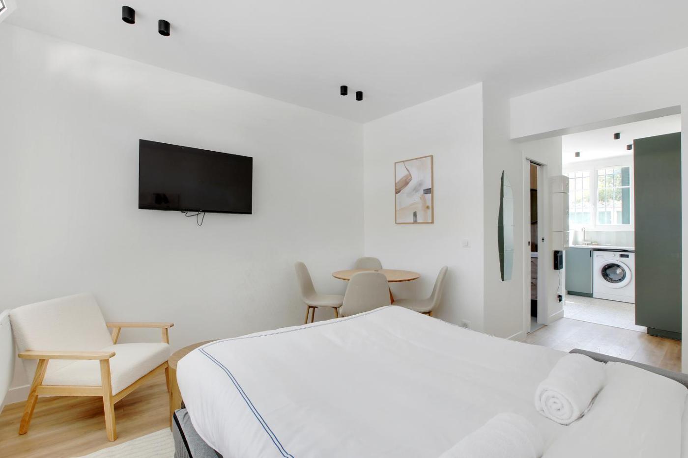 Appartement 1 Chambre. The apartment features 1 bedroom, 1 bathroom and a kitchen. The apartments kitchen is available for cooking and storing food. This apartment has a washing machine, heating and a flat-screen TV. The unit offers 2 beds.