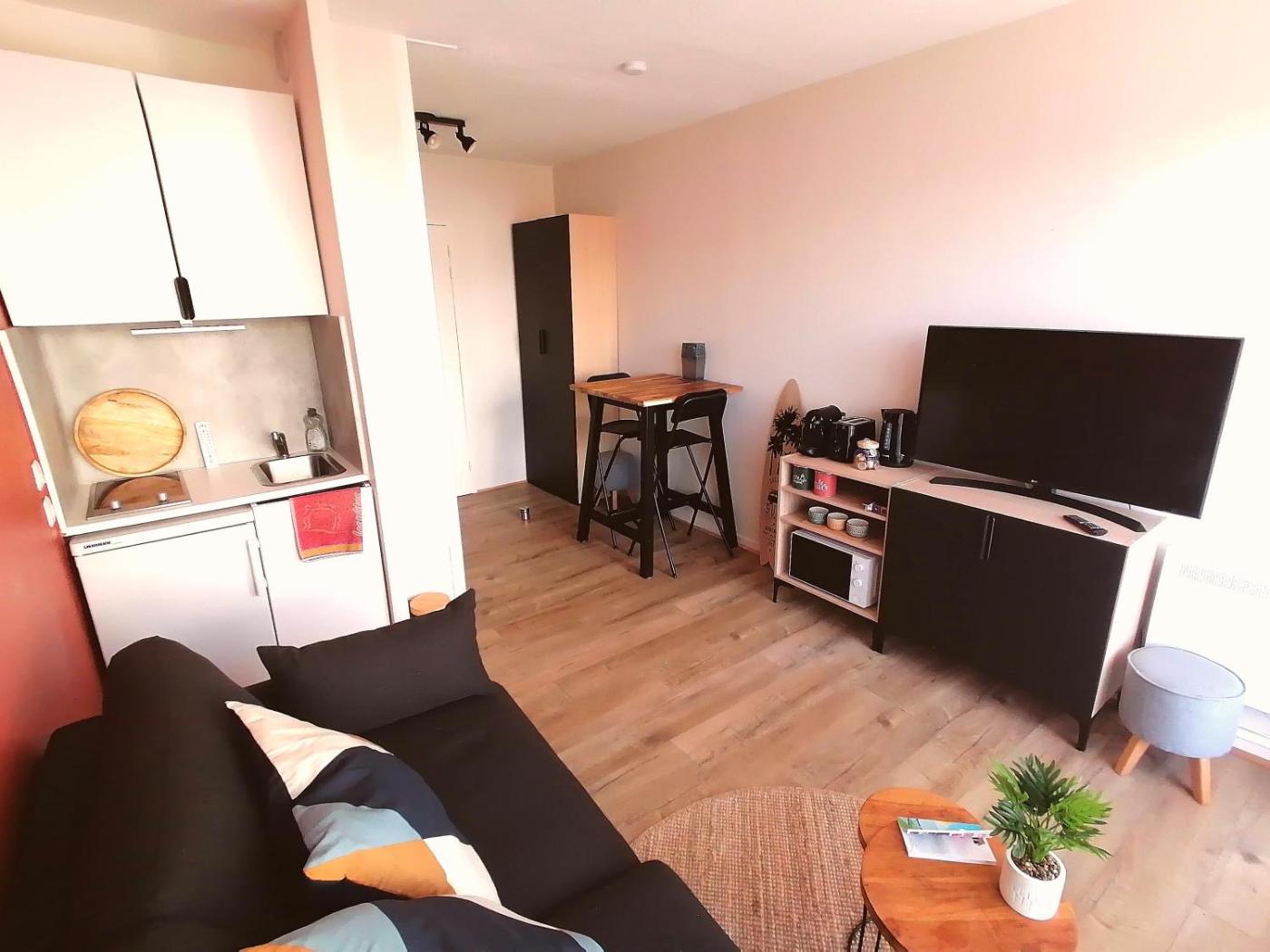 Appartement-Studio avec 1 Lit Double. Boasting a private entrance, this air-conditioned apartment features 1 living room, 1 separate bedroom and 1 bathroom with a shower and a hairdryer. Meals can be prepared in the well-fitted kitchen, which has a stovetop, a refrigerator, kitchenware and an oven. Featuring a terrace with garden views, this apartment also features soundproof walls and a flat-screen TV with streaming services. The unit has 1 bed.