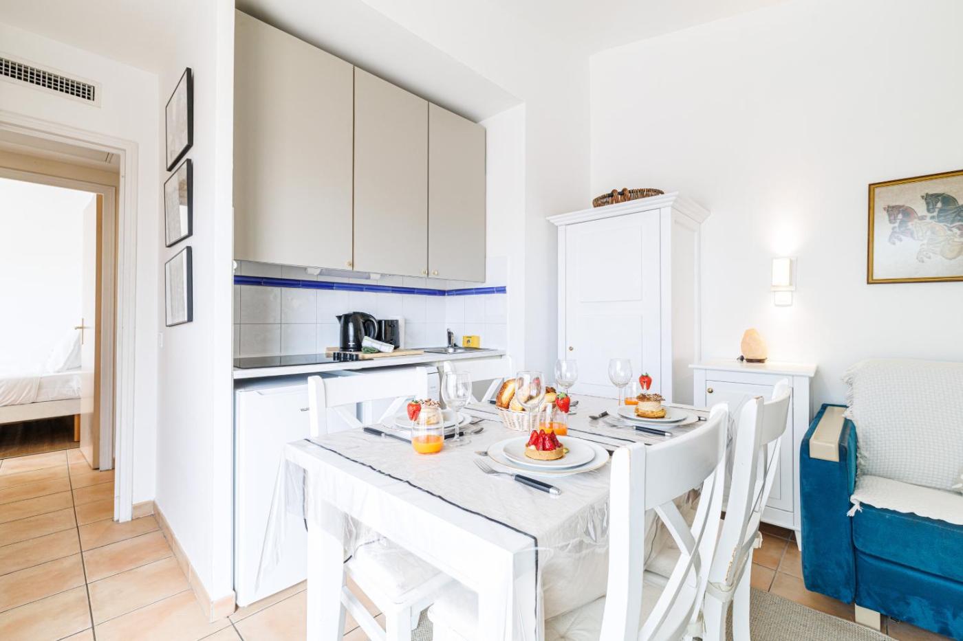 Appartement 1 Chambre avec Terrasse. This apartment features 1 living room, 1 separate bedroom and 1 bathroom with a bath and free toiletries. Guests can make meals in the kitchen that has a stovetop, a refrigerator, a dishwasher and kitchenware. Boasting a terrace with sea views, this apartment also features air conditioning and a flat-screen TV. The unit has 2 beds.