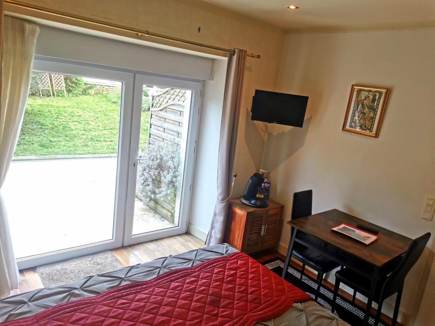 Chambre Double - Vue sur Jardin. Cette chambre double dispose dun plateaubouilloire, dune armoire, dune terrasse avec vue sur le jardin ainsi que dune salle de bains privative avec baignoire. Ce logement comporte 1 lit.