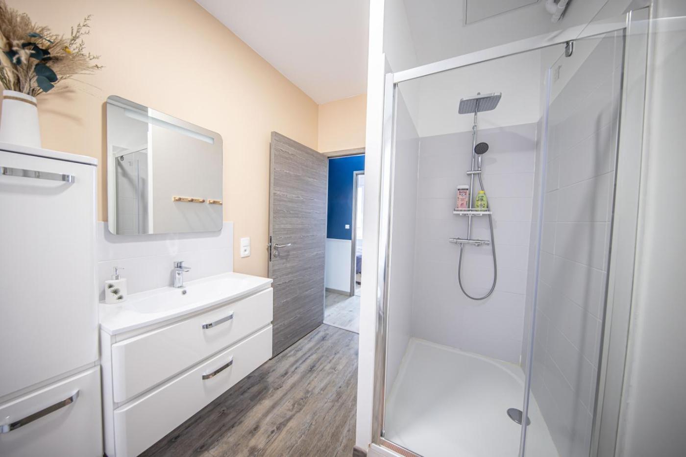Appartement 2 Chambres. Boasting a private entrance, this apartment includes 1 living room, 2 separate bedrooms and 1 bathroom with a shower and a hairdryer. Meals can be prepared in the well-fitted kitchen, which has a stovetop, a refrigerator, a dishwasher and kitchenware. The apartment offers a washing machine, soundproof walls, a tea and coffee maker, a flat-screen TV, as well as city views. The unit has 3 beds.