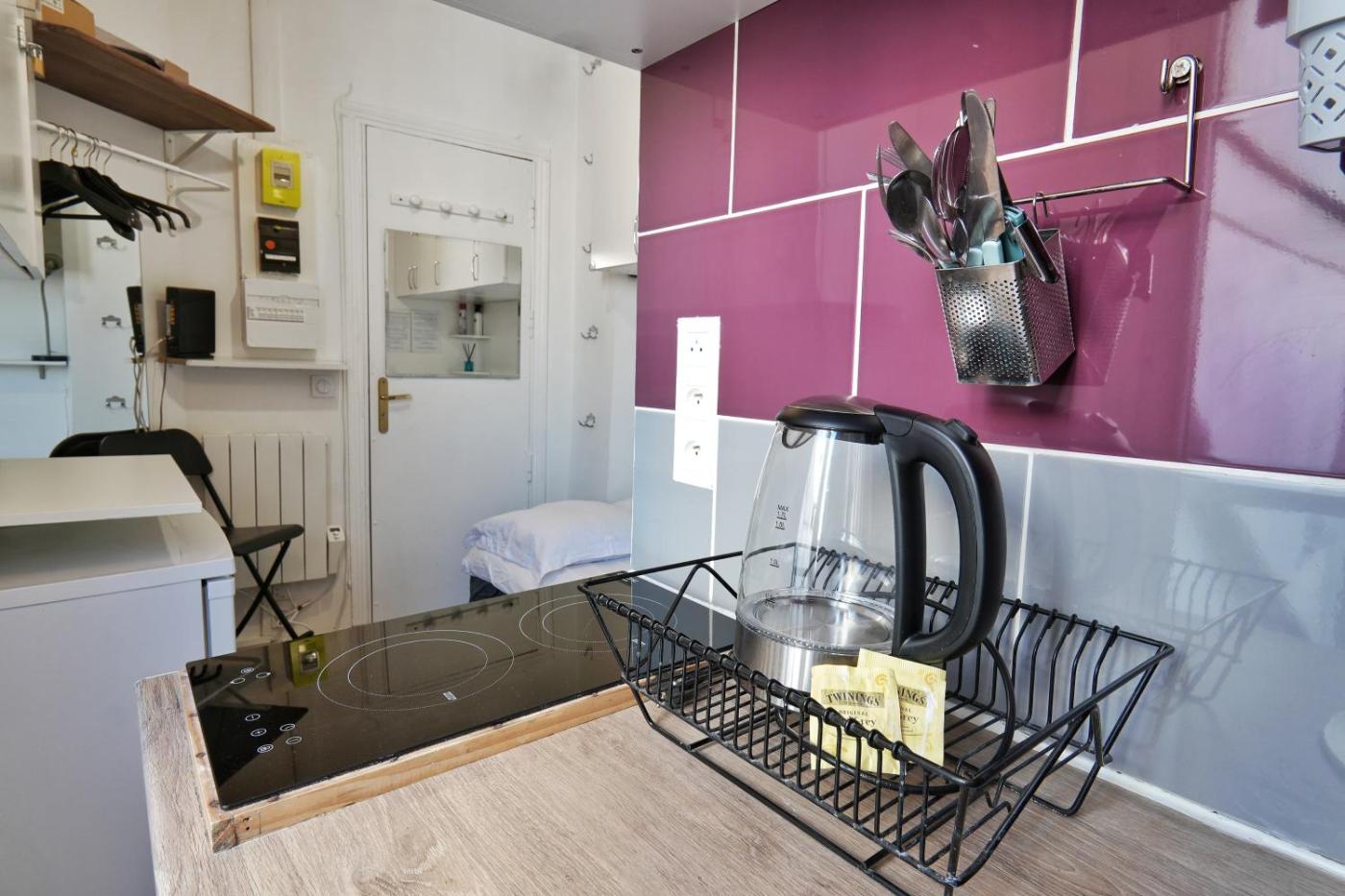 Appartement 1 Chambre. This apartment comes with 1 bedroom, a kitchenette and 1 bathroom with a shower and a hairdryer. Guests can make meals in the kitchenette that features a stovetop, a refrigerator, kitchenware and an oven. Among the room amenities are a washing machine, a wardrobe and an electric kettle as well as ancourtyard view. The unit has 1 bed.