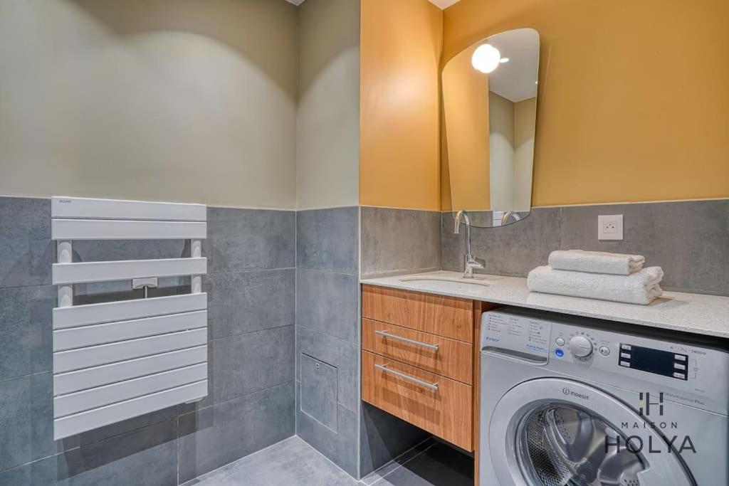 Appartement 1 Chambre. This apartment comes with 1 living room, 1 separate bedroom and 1 bathroom with a shower. Guests can make meals in the kitchen that features a stovetop, a refrigerator, a dishwasher and kitchenware. The apartment features a washing machine, a coffee machine, a seating area, a flat-screen TV, as well as city views. The unit has 2 beds.