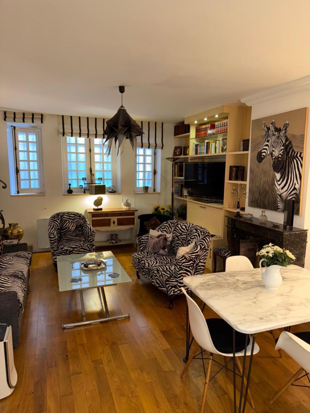 This accommodation is a semi-basement withmodern comforts in a former private mansion. That is to say, partially underground, the bedrooms, bathroom, and toilet sinks do not have windows to the outside. The three windows are in the livingdining roomkitchen area.Les enterrements de vie de célibataire et autres fêtes de ce type sont interdits dans cet établissement.