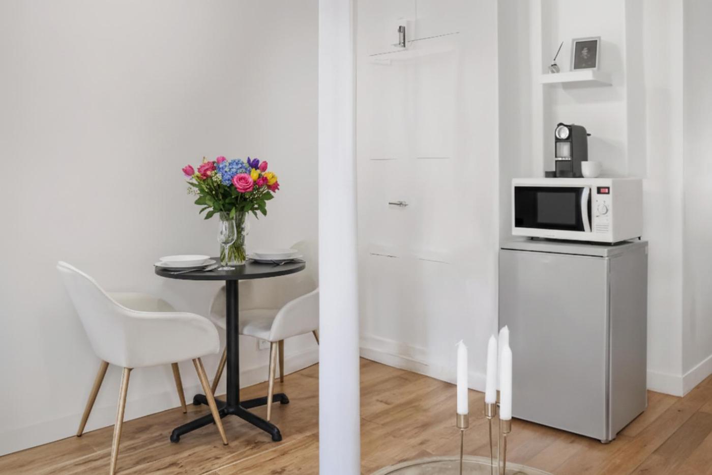 Studio. The studio has a private bathroom, a private entrance, a tea and coffee maker, as well as a seating area with a flat-screen TV. In the kitchenette, guests will find a stovetop, a refrigerator, kitchenware and a microwave. The studio features a dining area, a wardrobe, a sofa, heating, as well as a TV. The unit has 1 bed.