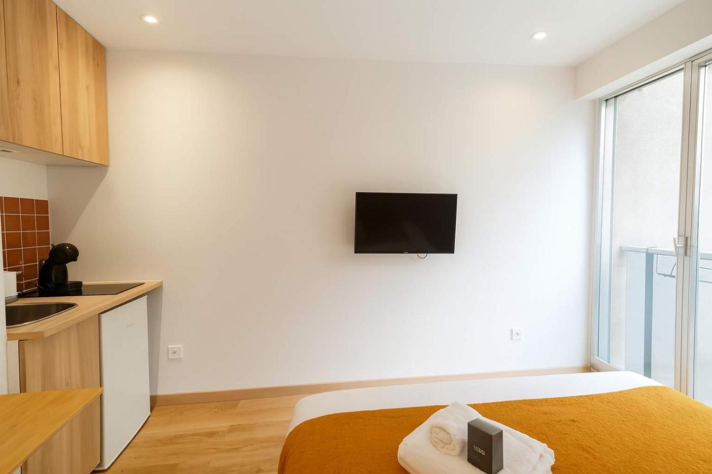 Studio. In the fully equipped kitchen, guests will find a stovetop, a refrigerator, kitchenware and a microwave. The studio offers a private entrance, a tea and coffee maker, a wardrobe, heating, as well as a TV with cable channels.