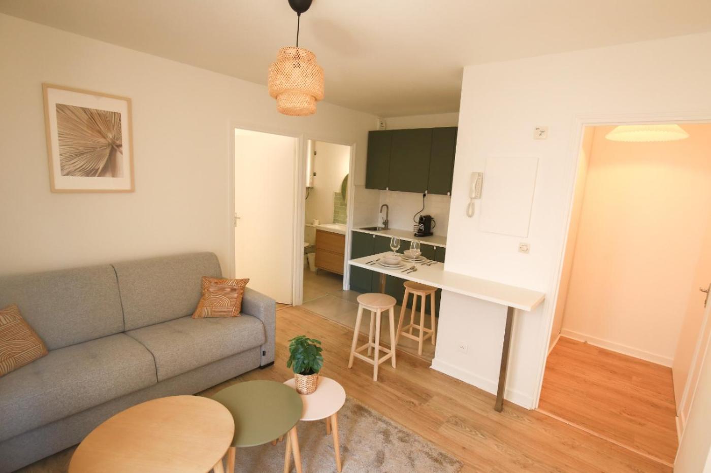 Appartement 1 Chambre. This apartment is comprised of 1 living room, 1 separate bedroom and 1 bathroom with a hairdryer. Meals can be prepared in the kitchen, which is fitted with a refrigerator, kitchenware, a microwave and a toaster. The apartment offers a washing machine, a coffee machine, heating and a TV. The unit offers 2 beds.