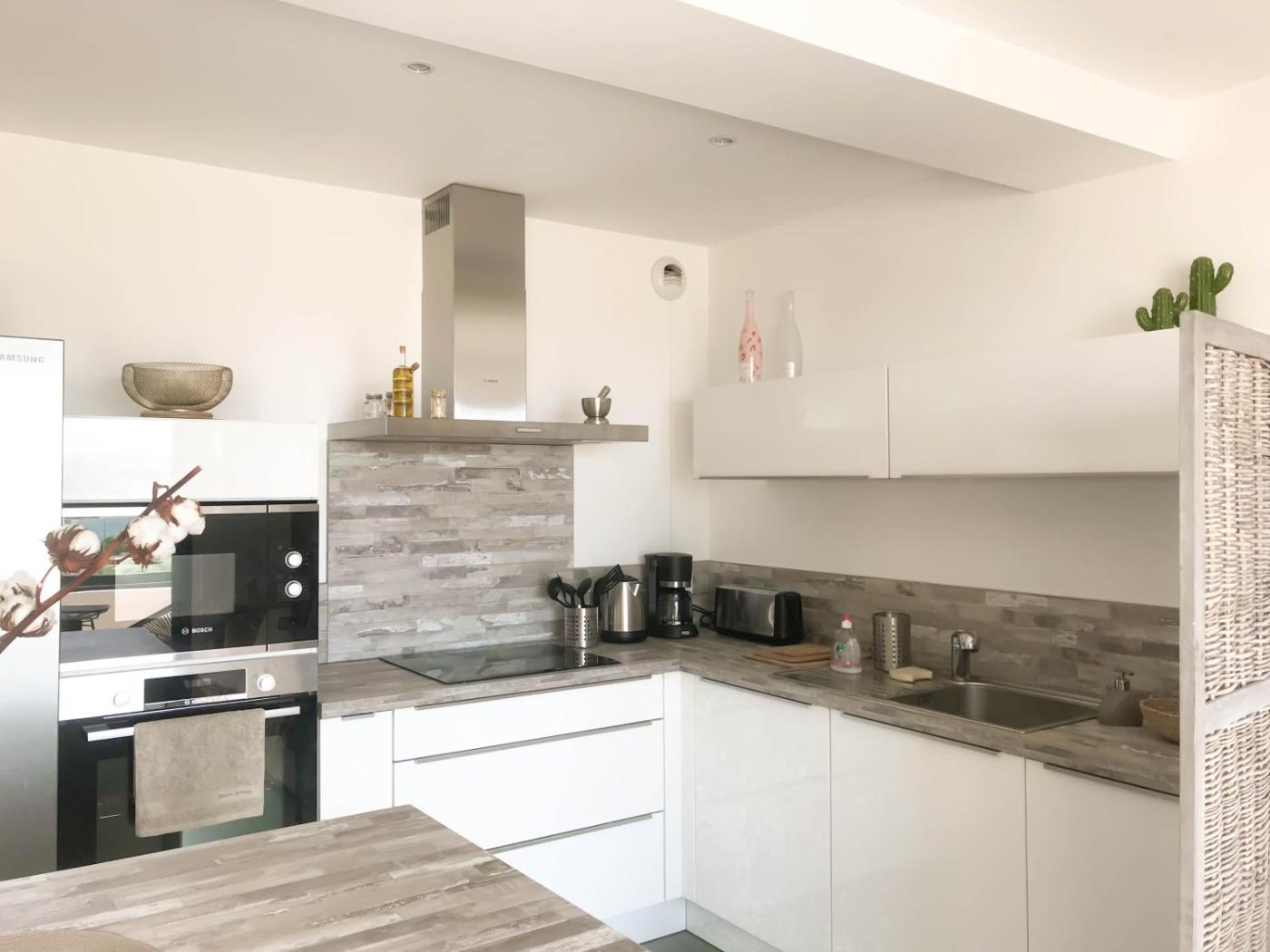 Appartement 1 Chambre. Boasting a private entrance, this air-conditioned apartment includes 1 living room, 1 separate bedroom and 1 bathroom with a walk-in shower and a hairdryer. In the fully equipped kitchen, guests will find a stovetop, a refrigerator, a dishwasher and kitchenware. Featuring a terrace with sea views, this apartment also offers a washing machine and a flat-screen TV. The unit has 2 beds. ;