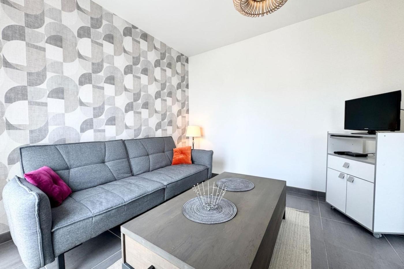 Appartement 1 Chambre. Boasting a private entrance, this apartment features a kitchen, 1 bedroom and 1 bathroom with a shower and a hairdryer. Meals can be prepared in the kitchen, which has a stovetop, a refrigerator, kitchenware and an oven. The apartment features a washing machine, a coffee machine, a dining area, heating and a TV. The unit has 1 bed.