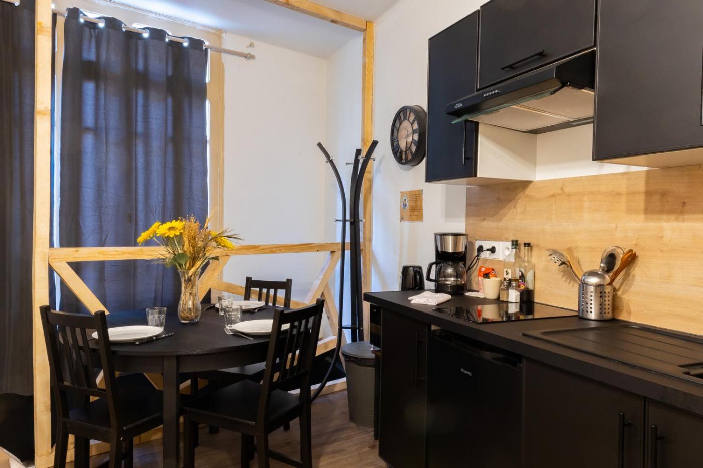 Appartement 1 Chambre. This apartment includes 1 bedroom, a kitchen and 1 bathroom with a bath or a shower. In the well-fitted kitchen, guests will find a stovetop, a refrigerator, a dishwasher and kitchenware. The apartment is fitted with a flat-screen TV, a tea and coffee maker, a high chair for children, as well as heating. The unit has 2 beds.