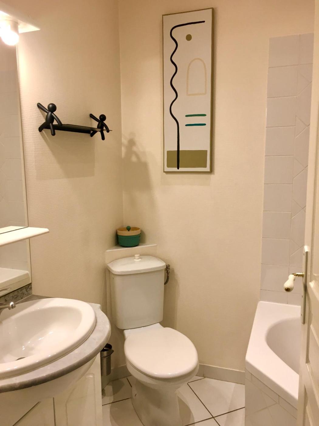 Appartement 1 Chambre. Featuring a private entrance, this apartment consists of 1 living room, 1 separate bedroom and 1 bathroom with a bath and a hairdryer. In the well-fitted kitchen, guests will find a stovetop, a refrigerator, kitchenware and a microwave. The apartment features parquet floors, a seating area with a flat-screen TV, a coffee machine, a dining area as well as a quiet street view. The unit offers 2 beds.