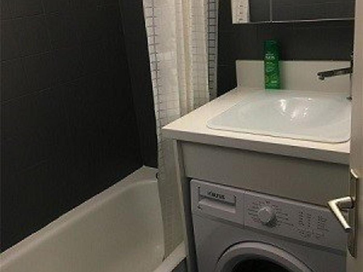 Cet appartement possède 1 chambre, une télévision, une cuisine équipée avec un réfrigérateur et un lave-vaisselle, un lave-linge, ainsi que 1 salle de bains avec une baignoire.