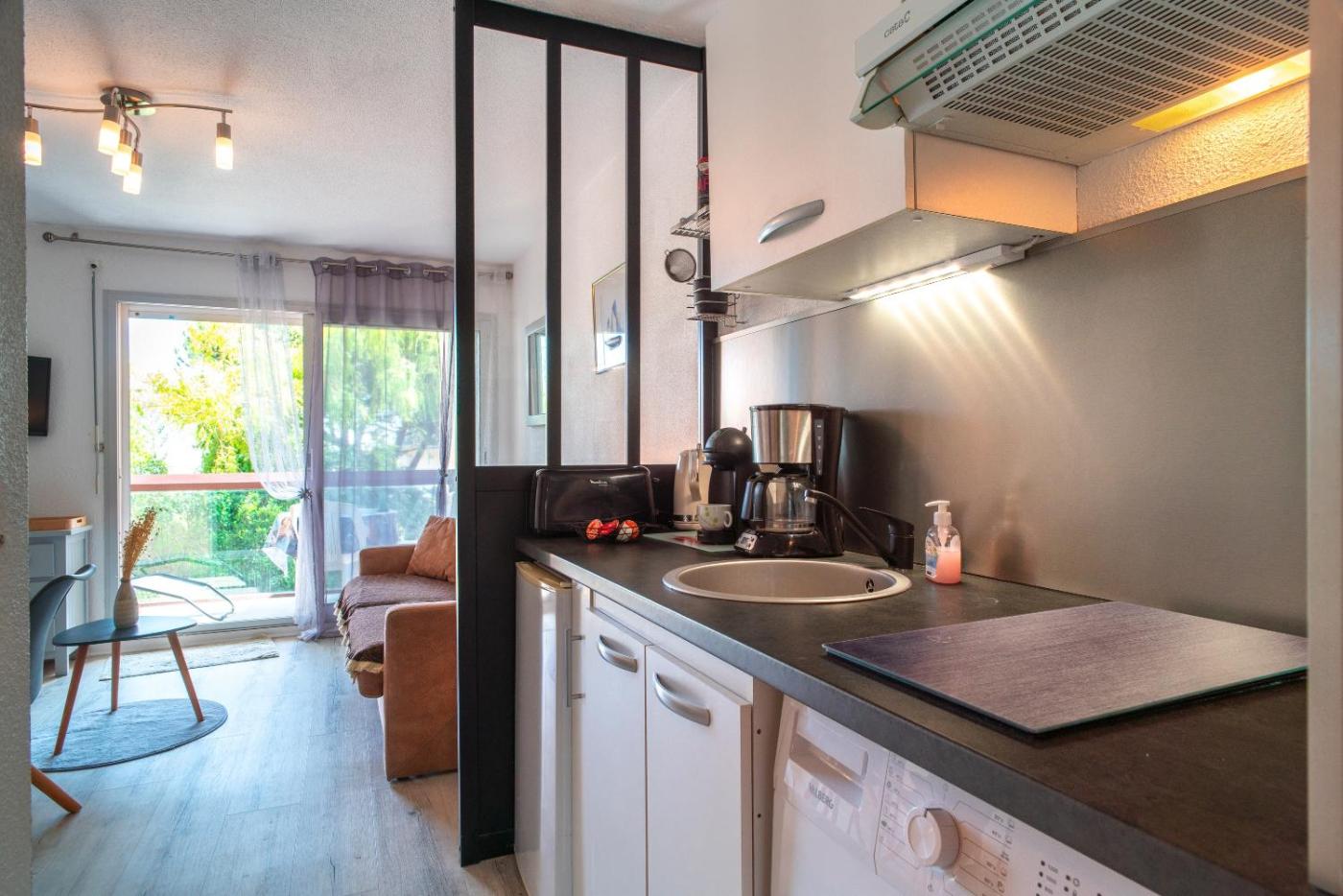 Appartement 1 Chambre. This apartment comes with 1 living room, 1 separate bedroom and 1 bathroom with a shower and a hairdryer. In the fully equipped kitchen, guests will find a refrigerator, kitchenware, an oven and a microwave. This apartment has a washing machine, a tea and coffee maker, a TV and a balcony. The unit has 2 beds.