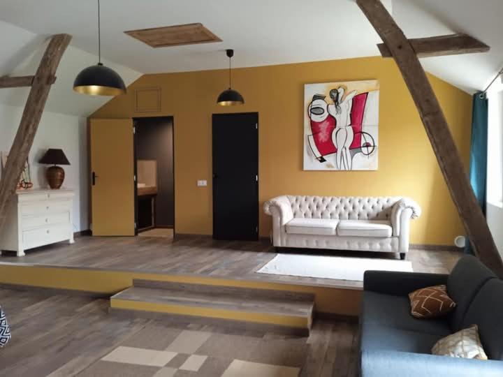 Chambre Familiale - Vue sur Jardin. The spacious family room provides a sofa, heating, as well as a shared bathroom featuring a walk-in shower and a hairdryer. The unit offers 2 beds.