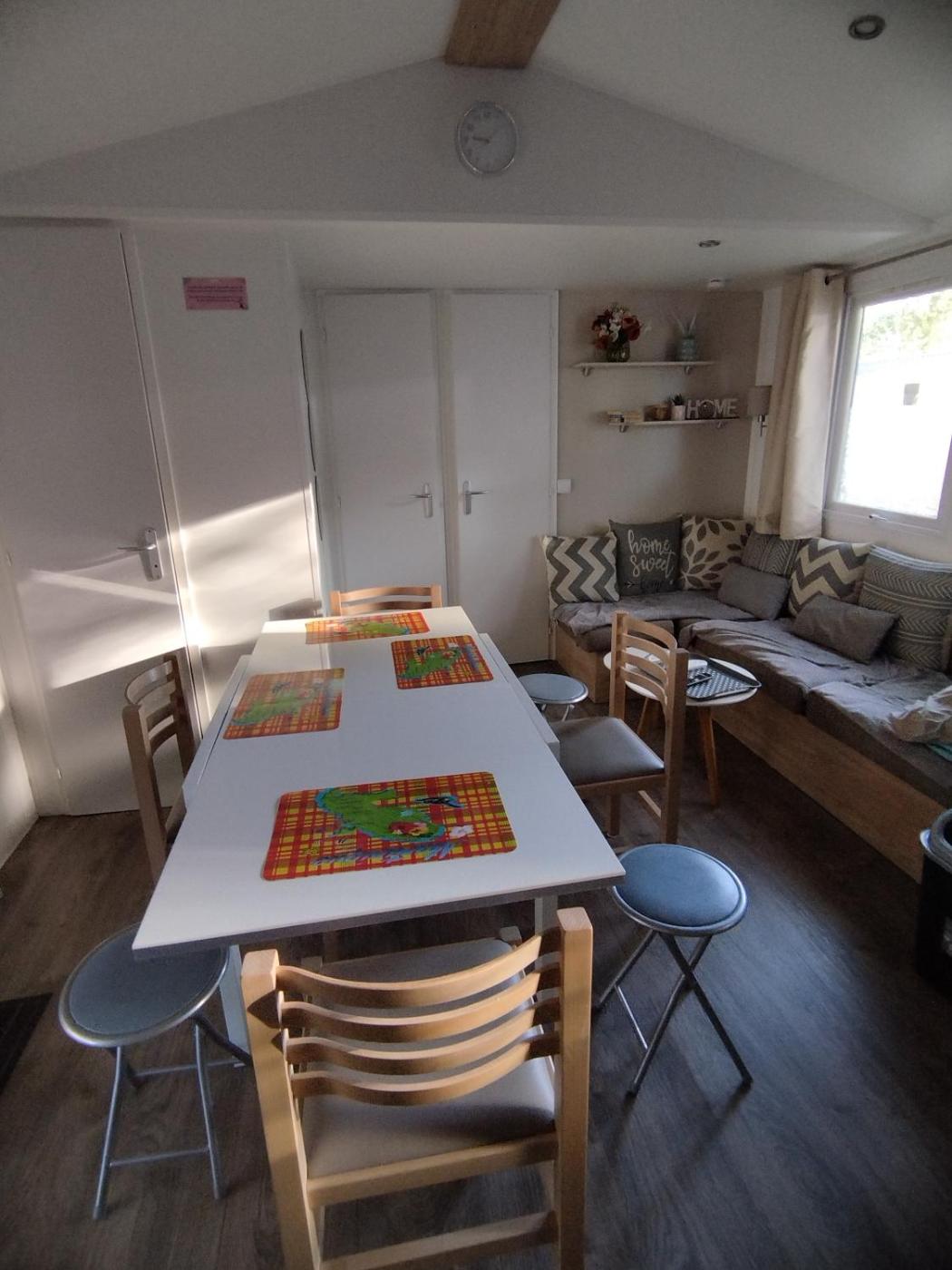 Mobile Home. This air-conditioned mobile home is comprised of 1 living room, 3 separate bedrooms and 1 bathroom with a shower. The well-equipped kitchen features a stovetop, a refrigerator, kitchenware and an oven. This mobile home has a washing machine, a tea and coffee maker, a flat-screen TV and an outdoor dining area. The unit offers 6 beds.