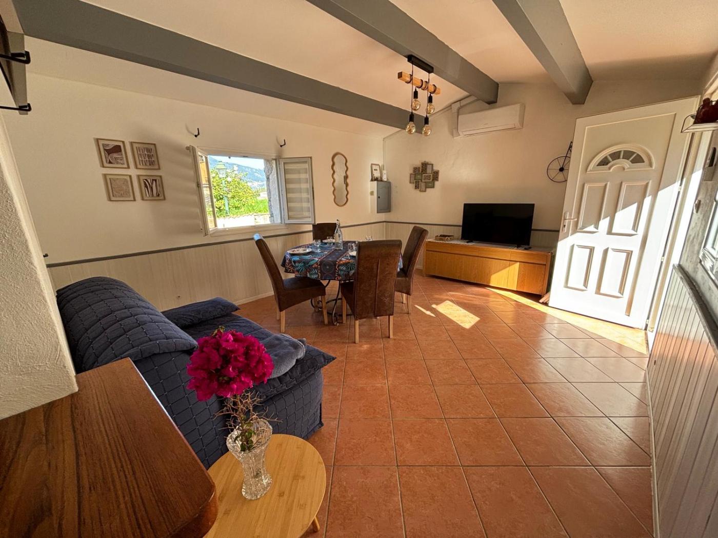 Maison 1 Chambre. Featuring a private entrance, this air-conditioned holiday home is comprised of 1 living room, 1 separate bedroom and 1 bathroom with a shower and a hairdryer. Guests will find a stovetop, a refrigerator, kitchenware and an oven in the fully equipped kitchen. The holiday home also has a barbecue. Boasting a terrace with sea views, this holiday home also offers a washing machine and a flat-screen TV. The unit offers 2 beds.