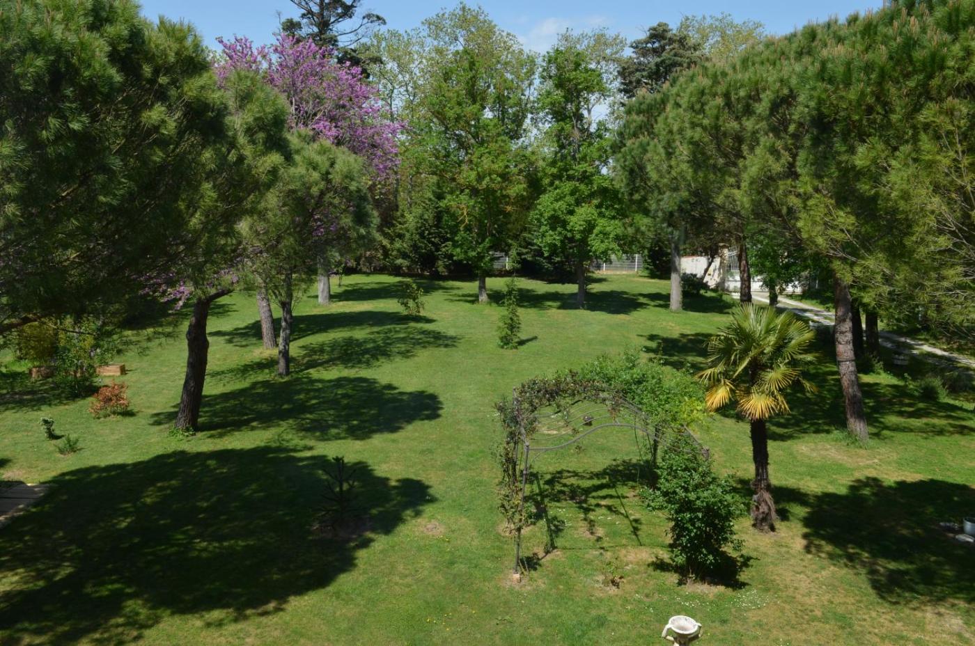 Chambre Quadruple avec Salle de Bains Commune. Offering free toiletries, this quadruple room includes a shared bathroom with a hairdryer and slippers. The quadruple room is fitted with parquet floors, a sofa, a wardrobe, a dressing room as well as garden views. The unit offers 2 beds. ;